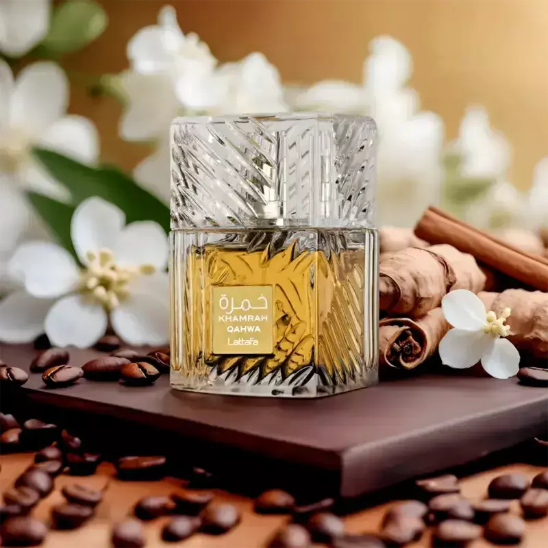 Khamrah Qahwa é um perfume importado Lattafa feminino oriental gourmand. Exala um aroma cativante e sofisticado que encanta a todos!